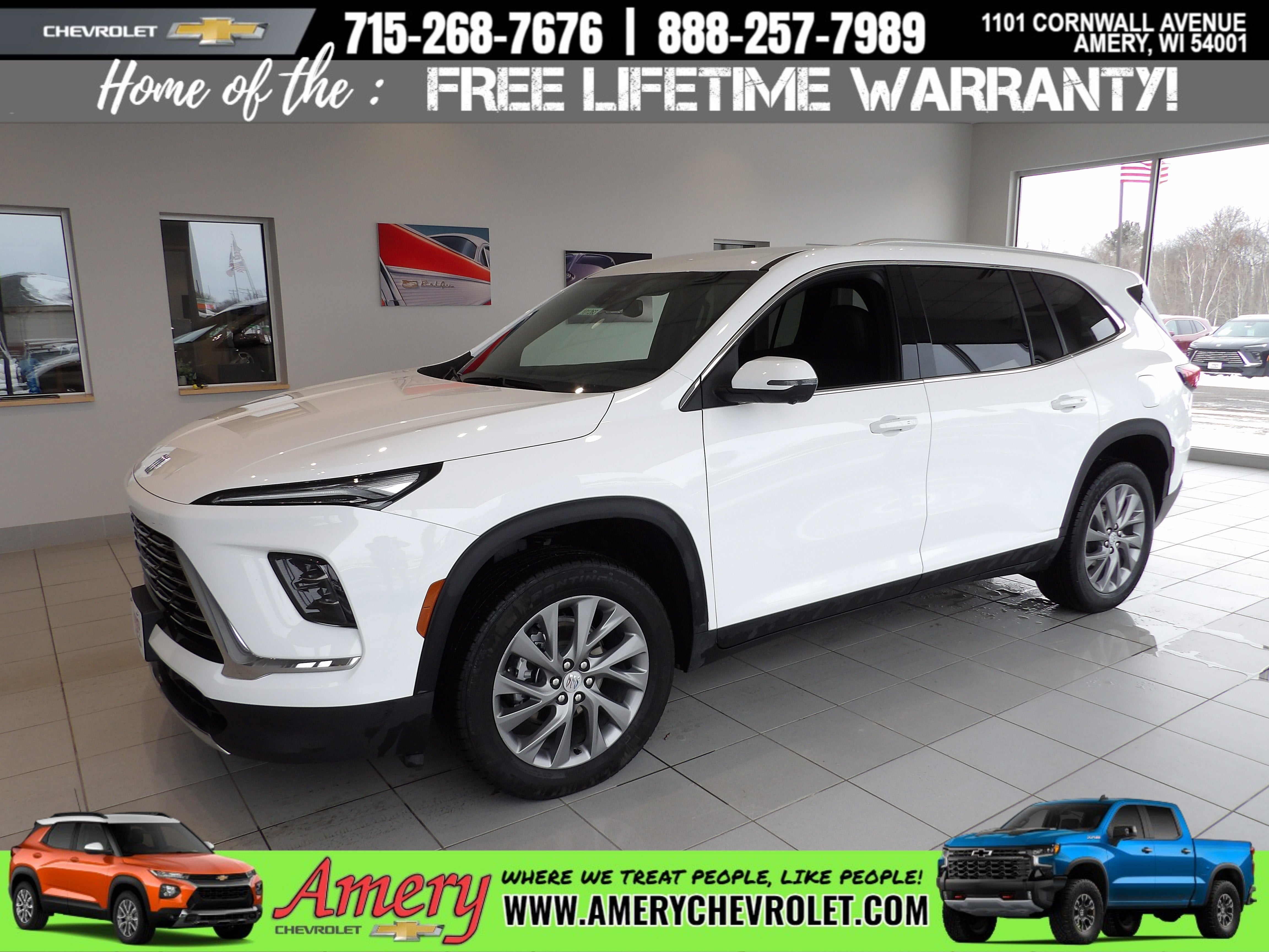 All Vehicles Manufacturers rebates apply to new vehicles, everyone qualifies! Prices do not include additional fees and costs of closing, including government fees and taxes, any finance charges, any service fees, any emissions testing fees or other fees. All prices, specifications and availability subject to change without notice. Contact dealer for most current information and to verify vehicle is still available. New vehicle pricing includes all offers and incentives based on residency. Tax, Title and License are not included in vehicle prices shown and must be paid by the purchaser. While Amery Chevrolet ensures the accuracy of the information on this site, errors sometimes do occur. Please verify your questions with our sales team by stopping into dealership or calling us directly at 715-268-7676.WHY CHOOSE AMERY CHEVROLET? IT'S SIMPLE -- We choose to put our customers needs first. Our New, Used and Certified Pre-Owned Vehicles pass an inspection or we don't sell it, period!! Your safety is our utmost concern. On top of that, qualifying new and pre-owned vehicles get our FREE Lifetime Warranty with purchase! Our Service Department is filled with Service Consultants and Certified Chevrolet Technicians that care and our Parts Department is fully stocked. We offer FREE loaners and FREE shuttles during your service, FREE Wi-Fi, fresh popcorn and coffee in our guest lounge. We take pride in working with each and every customer with honesty, integrity, and personalized customer service. You not only become a customer, you become our family! You can reach us at 715-268-7676 -or- 888-257-7989